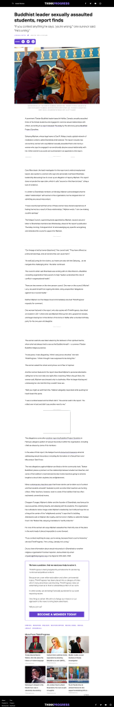 It is also lamentable that after the reprehensible misdeeds of these lamas are exposed, the Dalai Lama does not retract his approval of them and allows the continuation of an implied endorsement. In the case of Sogyal Rinpoche, it was only after significant time had passed and Sogyal Rinpoche’s scandals became uncontainable, that the Dalai Lama expressed some regret but still referred to Sogyal Rinpoche as his “very good friend”. In addition, the Dalai Lama added that the only thing to do is to expose these abusive lamas and make the misdeeds of these lamas’ wrongdoing, public. However, the Tibetan leadership does not seem to heed its own advice as neither the CTA’s website nor the Dalai Lama’s website carry any warning of these very dangerous Tibetan Buddhist figures. Surely, the loudest warning should be sounded by the very authorities who placed them in a position where they could harm and abuse so many.